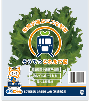 相鉄いずみ野線・緑園都市駅前の未活用施設を有効活用した第一号工場「SOTETSU GREEN LAB」(横浜市泉区)で栽培・収穫されたフリルレタスを、相鉄線で輸送し、沿線のそうてつローゼン6店舗で販売。
