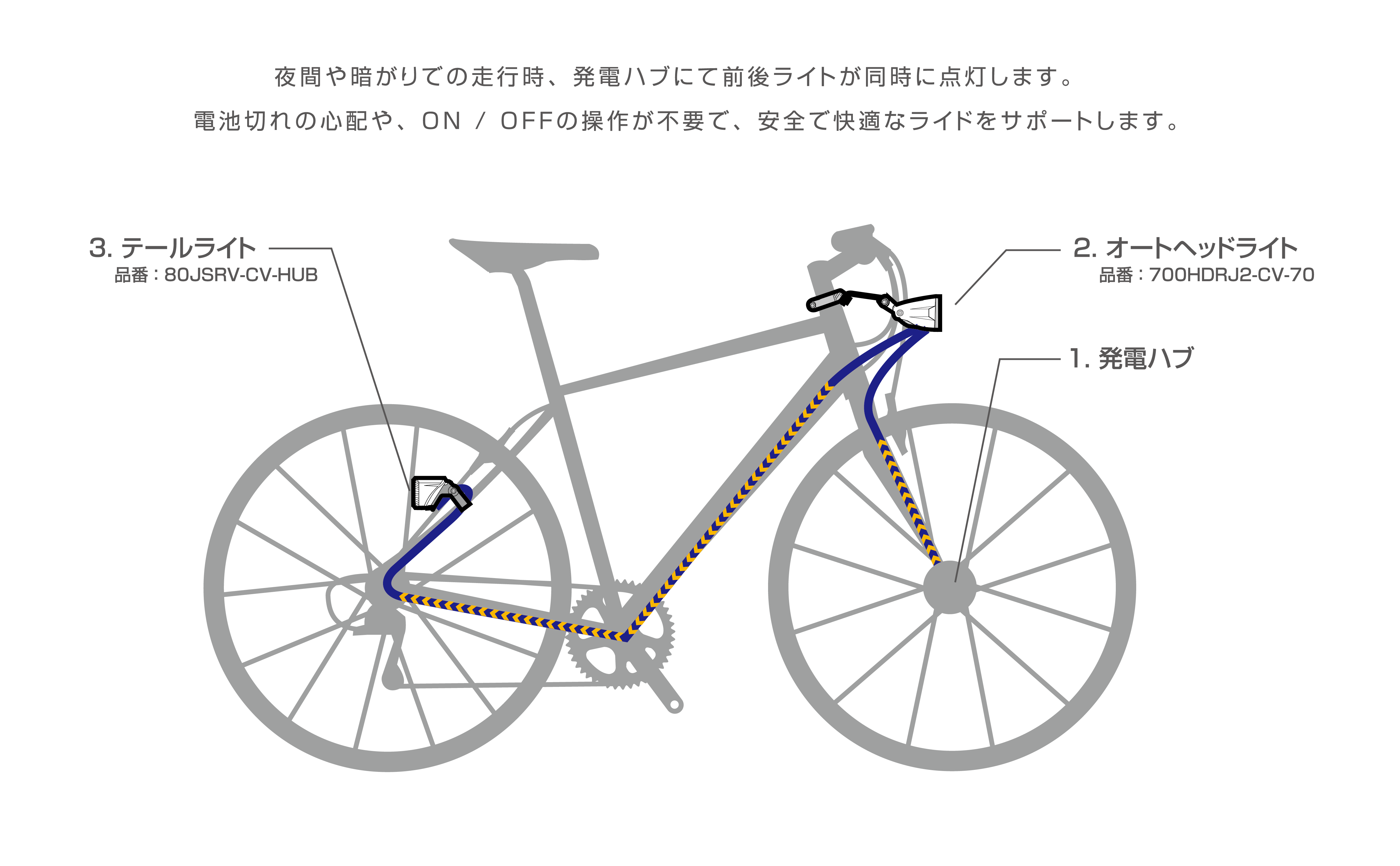 夜間や天気の悪い日は走行中の自転車は車からは見えにくい存在です。