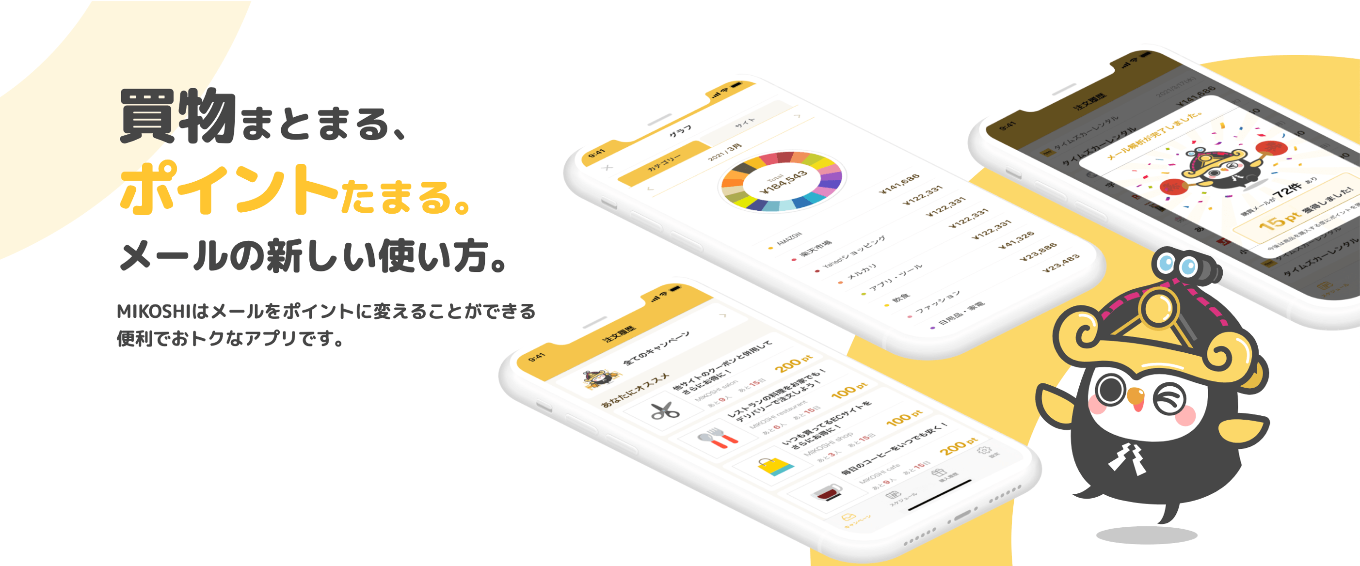 MIKOSHIは、メールをポイントに変えることができる便利でお得な無料アプリです。普段お使いのメールアカウントをMIKOSHIに連携するだけで、簡単にポイ活をはじめることができます。