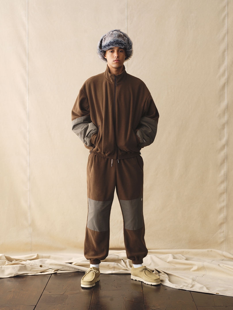 「ニューエラ」のヘッドウェアにマッチするオーセンティックなカジュアルウェアラインNEW ERA® BLACK LABEL。2023秋冬シーズンのテーマは” Uniforms of Freight Companies”。貨物・運送業のユニフォームにインスピレーションを受けたラインナップとなり、ブラウン&オリーブがキーカラーに採用されている。