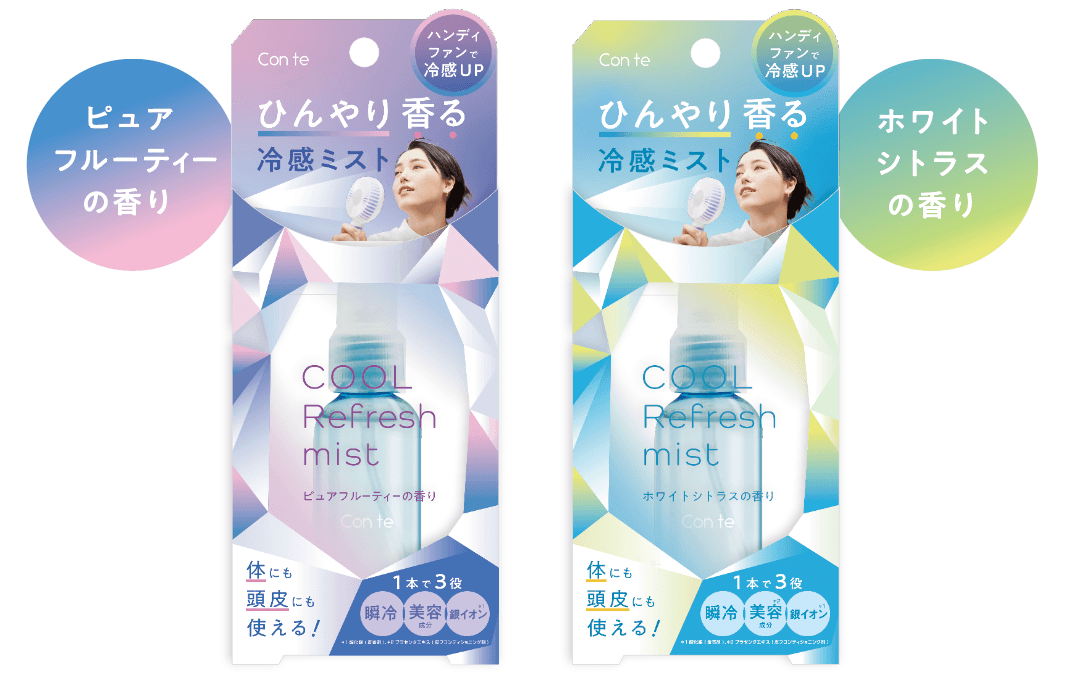 そのような経緯でハンディファンと一緒に使えるいひんやりコスメはないか?と「STコンテ クールリフレッシュミスト」を開発いたしました。