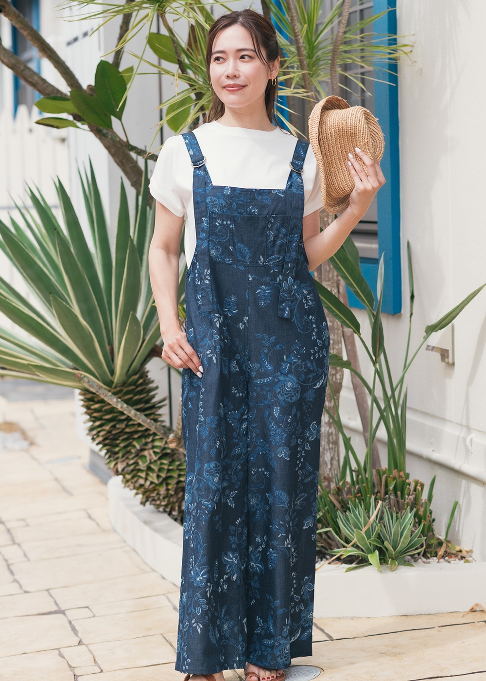 上品な更紗柄をラフなデニムでカジュアルダウン。