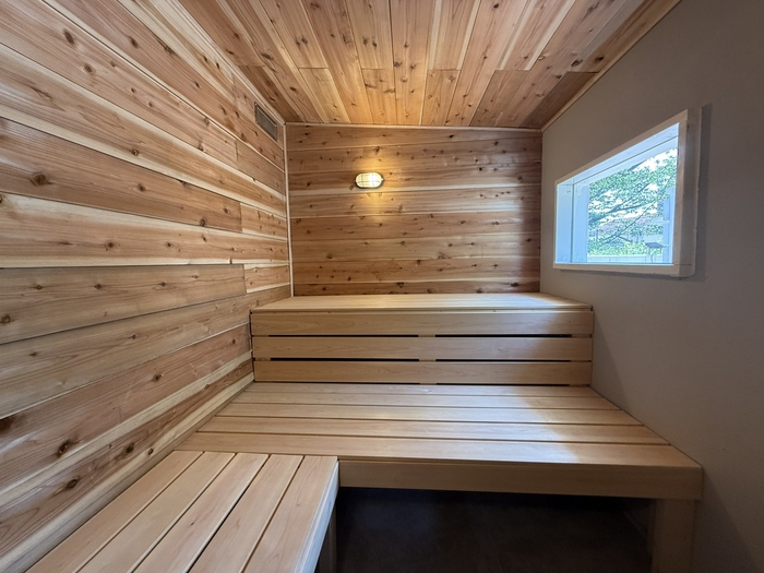 ・定員6名の屋外サウナ小屋(薪式ではなく電気式/完全貸切)