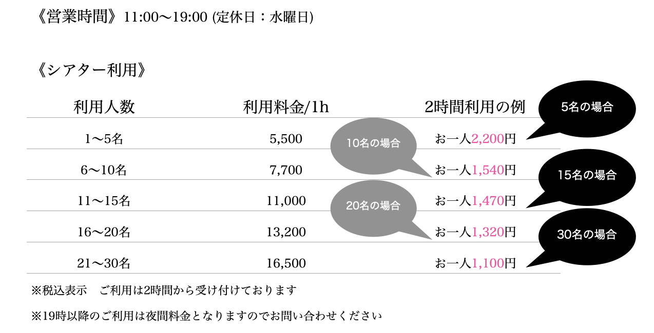 人数が集まれば割り勘で映画館よりも低価格で楽しめるそんなプランにリニューアルしました。