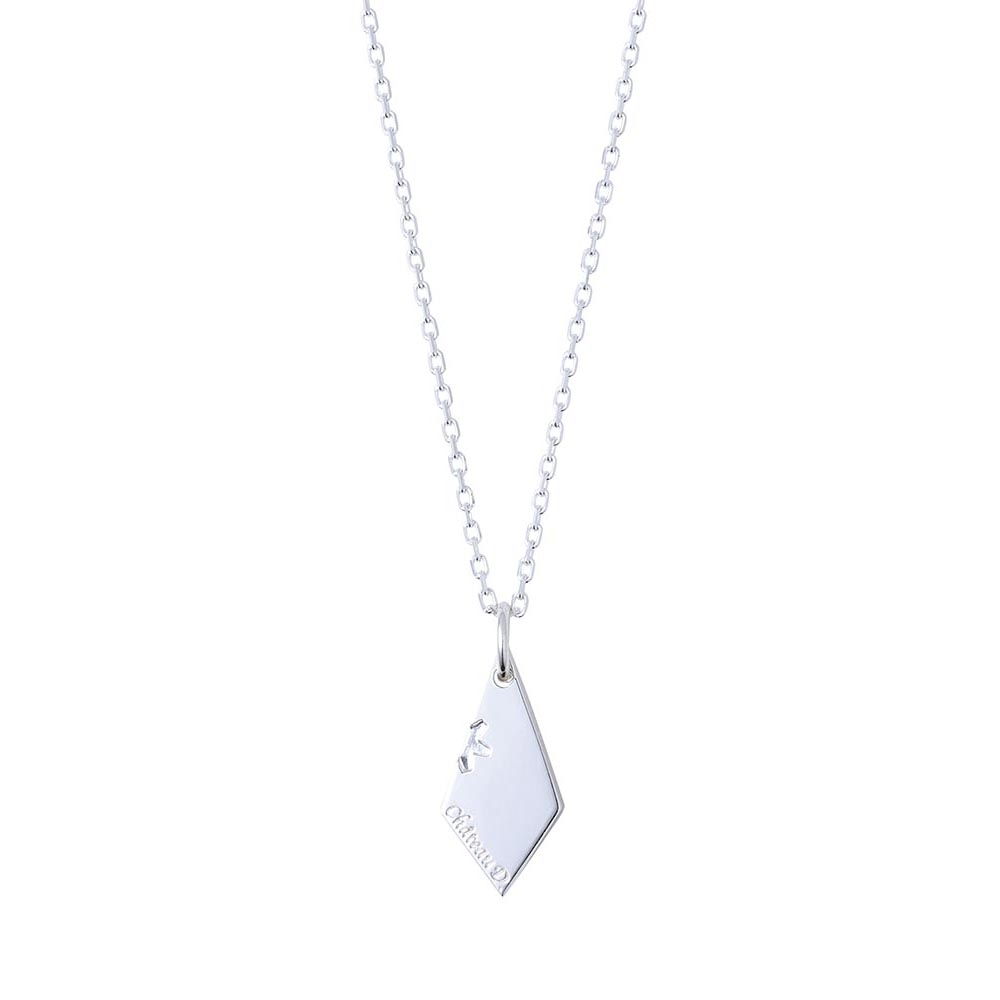 裏面には名前と、ホローポイント弾の花が開くような様子を表現したアイコンを刻印しました。こちらのアイコンは別売りの「リャンハモデル」のネックレスと合わせるとモチーフが浮かび上がります。