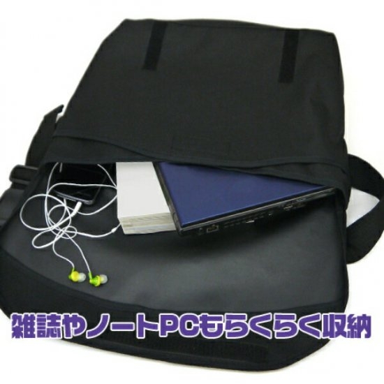 ブラックに善逸のイラストやDEMONの文字がクールな、メッセンジャーバッグです。