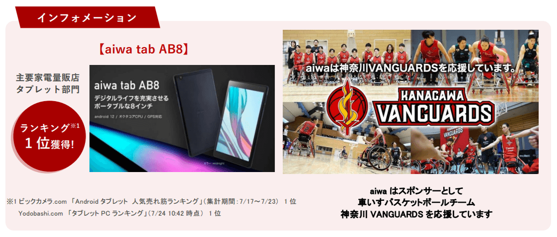 販売製品や詳細は、ECサイト「aiwaダイレクト」をご覧ください。