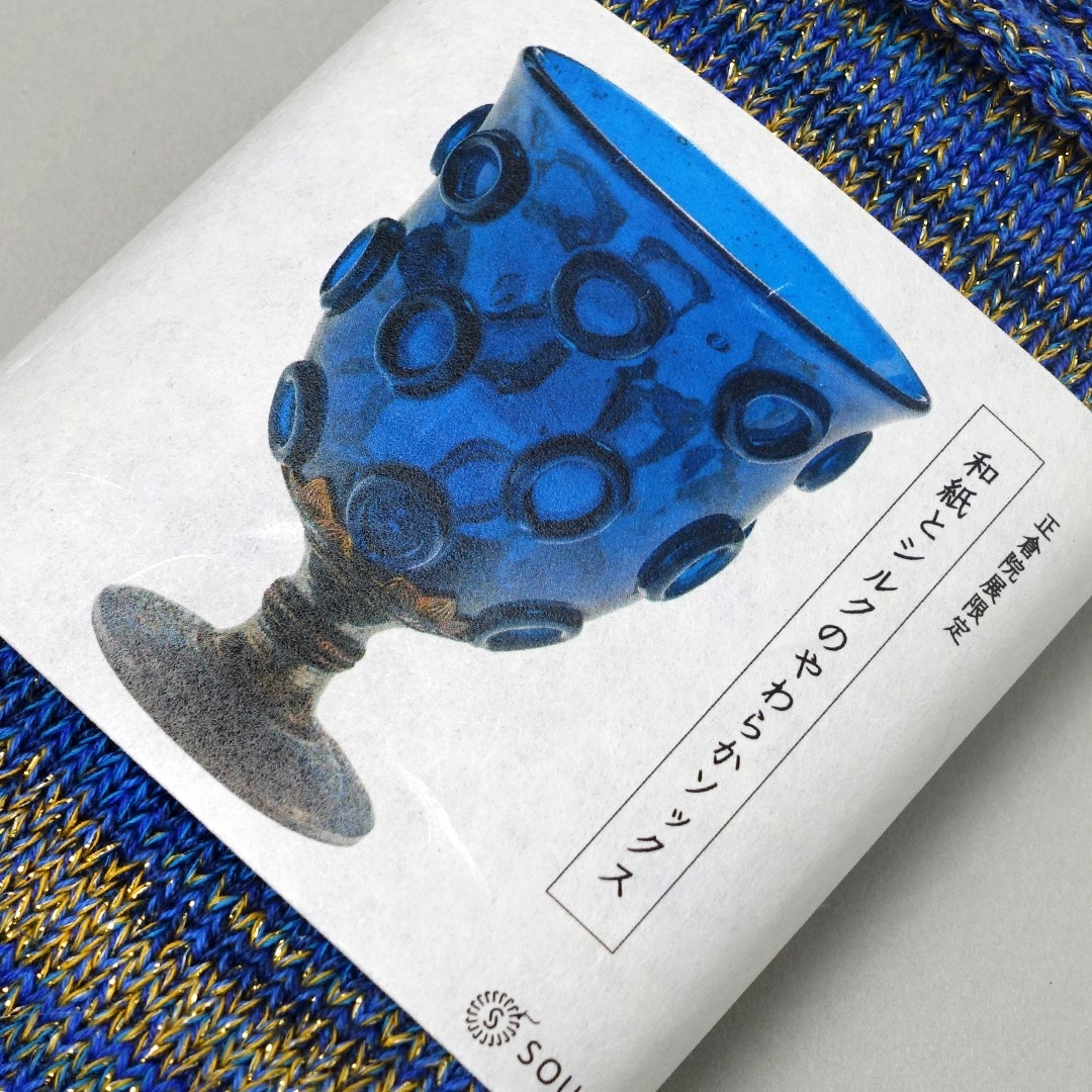 この宝物が持つ瑠璃色の世界を、「SOUKI ORIGINAL - 和紙とシルクのやわらかソックス -」で表現しました。