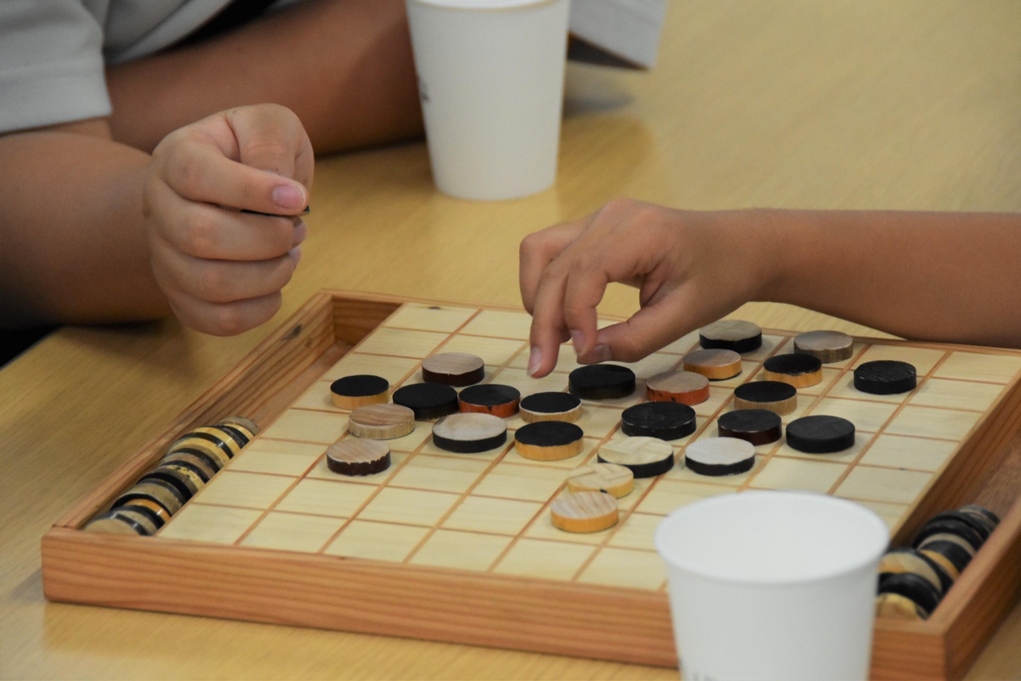 経済学部の伊藤志のぶ教授のゼミ生と有志の学生、愛知県立名古屋聾学校の生徒が連携し8月27日、中日青葉学園の児童・生徒を招いて手作りのボードゲーム「リバーシ」大会を本学天白キャンパスで開催しました。