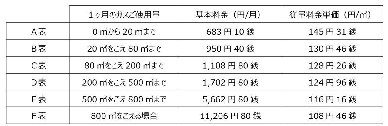 ■ガス料金表