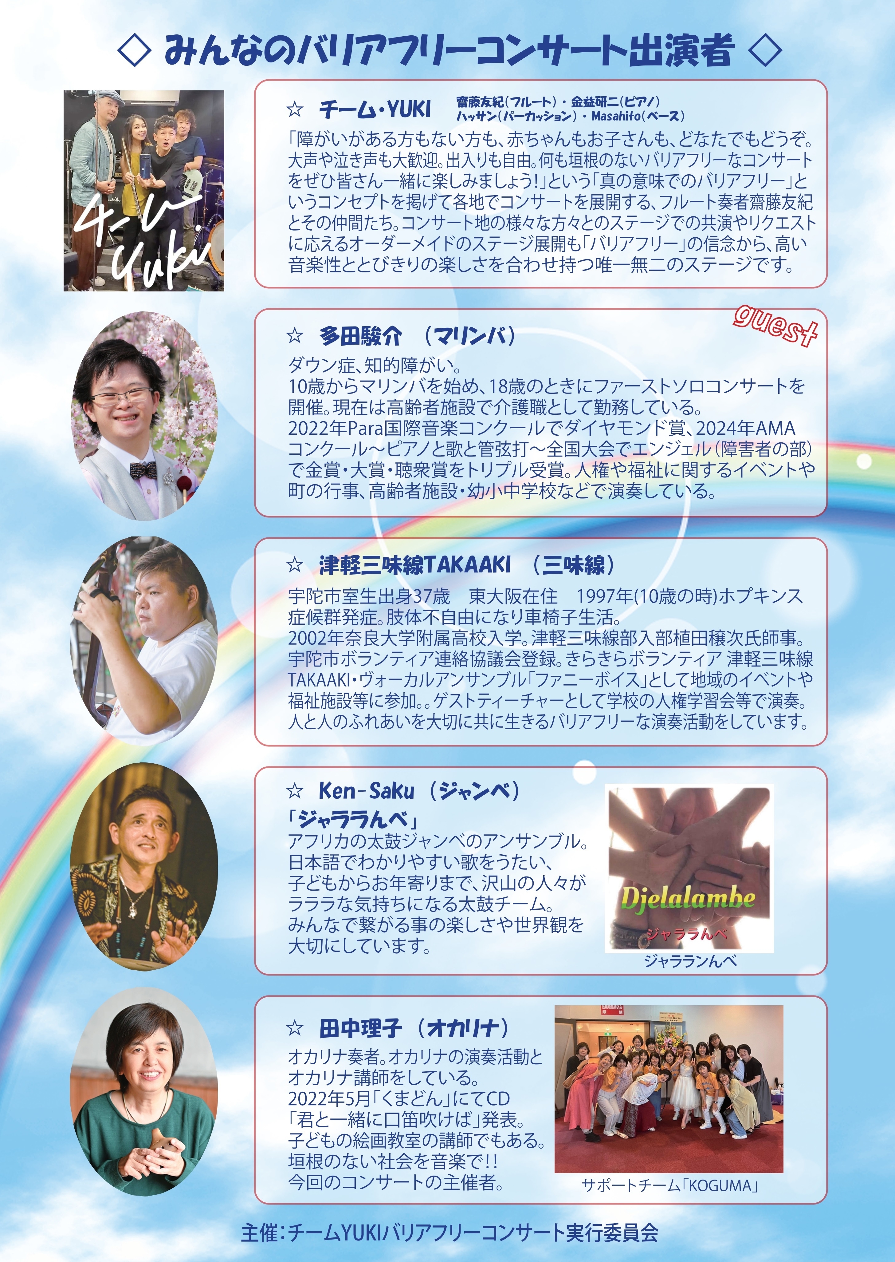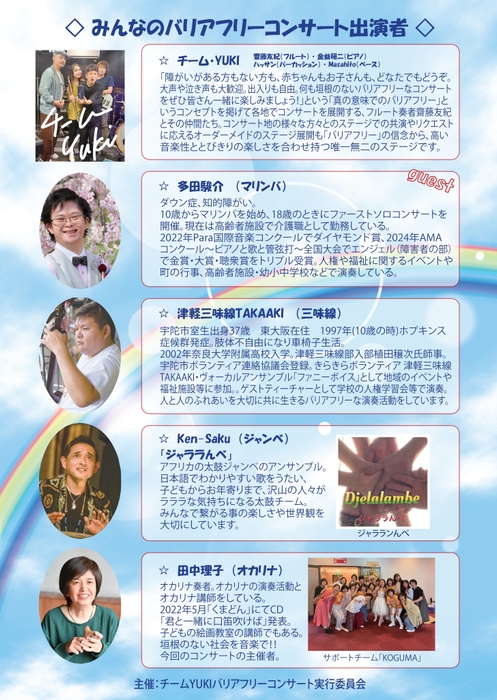 たとえ障がいがあって、声を上げたり、泣いたりしても、理解したうえで、演奏をして、真の意味でのバリアフリーを実現するコンサートとして開催します。
