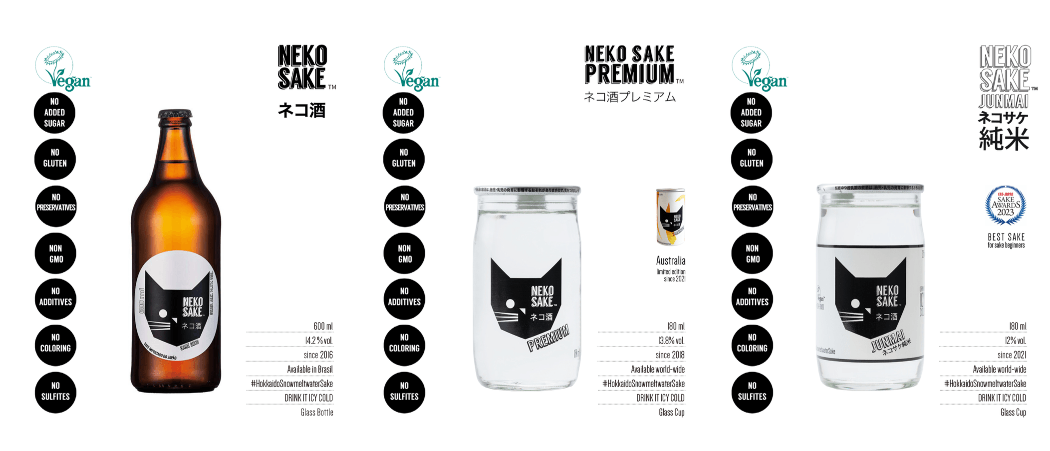ネコサケ純米はとても甘口でフレッシュ、ネコ酒プレミアムは冷やせば冷やすほどサラサラスイスイお水のように飲める少し辛めの味わいです。北の灘と言われた旭川の地酒蔵“高砂酒造”で「ネコサケ」は造られています。ネコサケ開発当時は低アルコールの日本酒はほとんどありませんでした。ワインを飲み慣れている海外の、日本酒を初めて飲む人たちを意識して、日本酒らしさを残しながらギリギリまでアルコール度数をさげたのがネコサケです。
