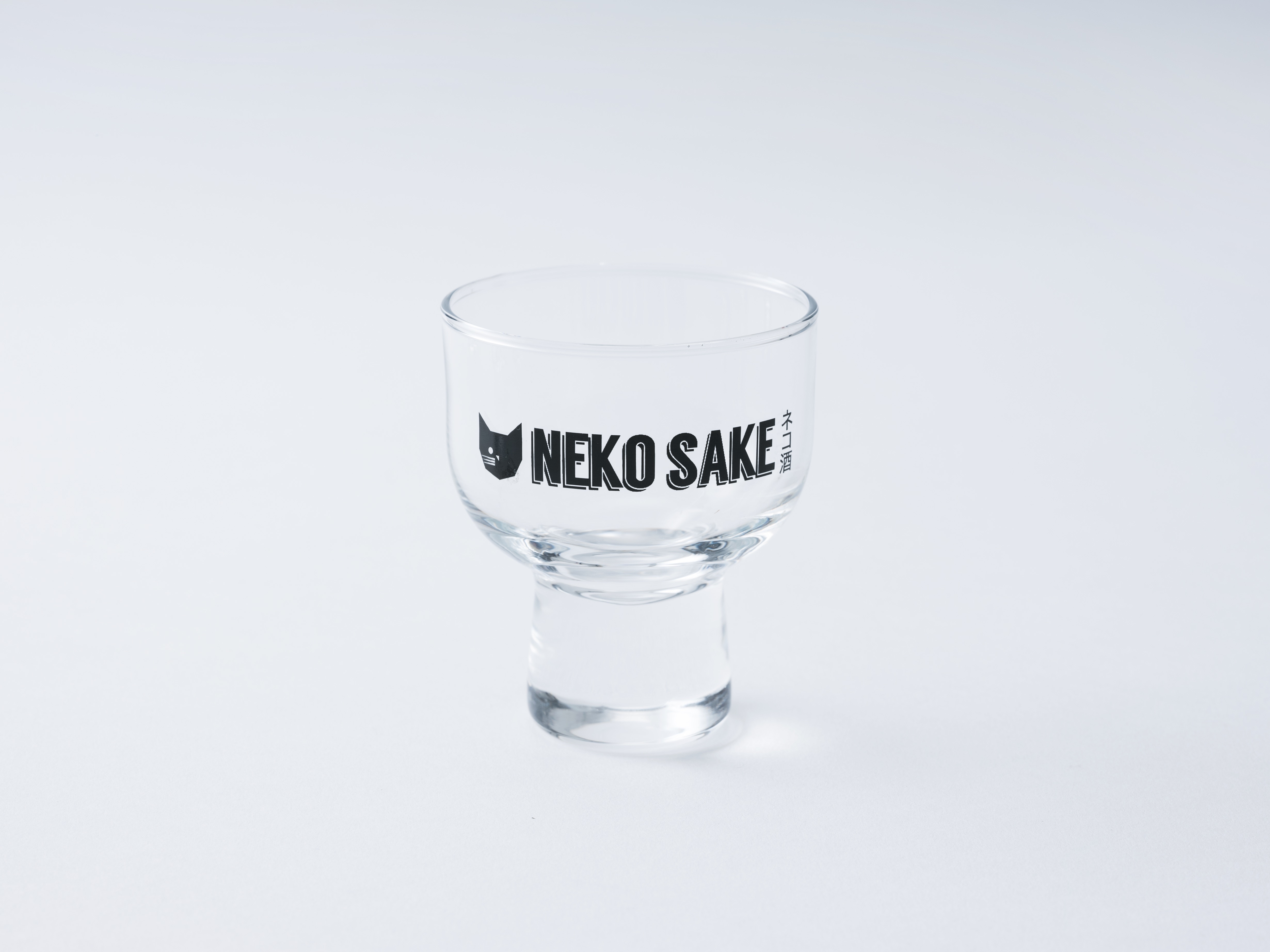 日本が誇る、インダストリアルデザイナー柳宗理さんの作品“清酒グラス”の大サイズ・ネコプリント付き、デザイン違いが2個入っています。