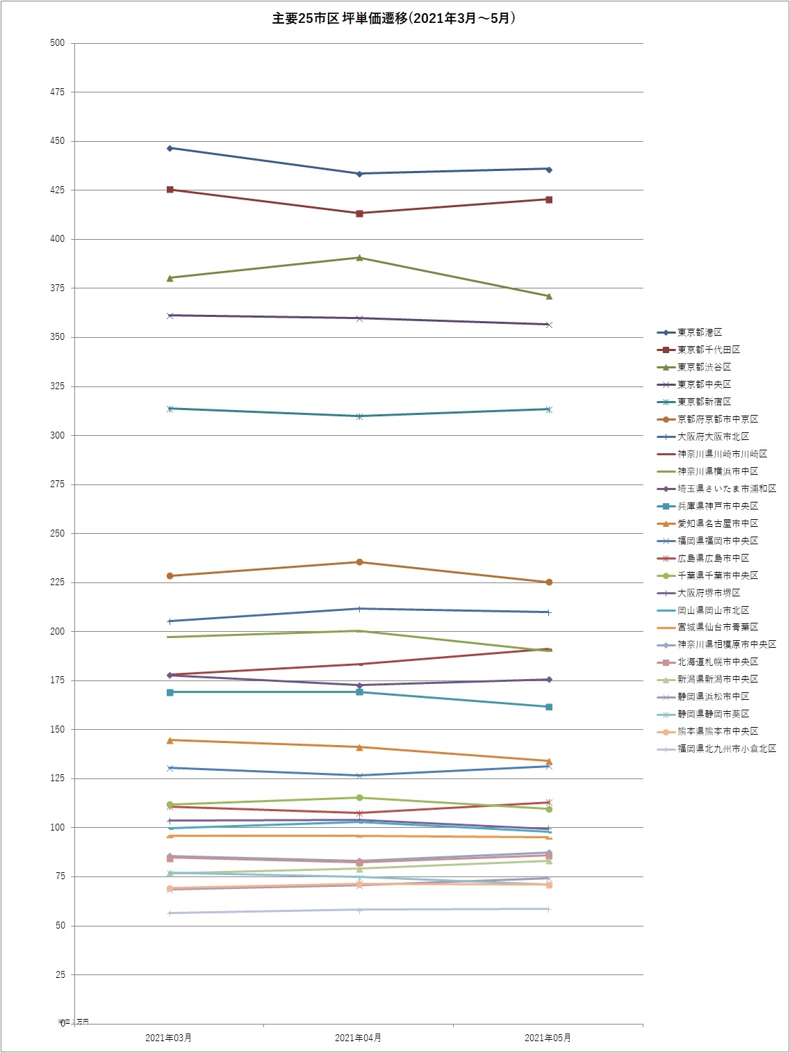 ■主要25市区 坪単価遷移(2021年3月~5月)