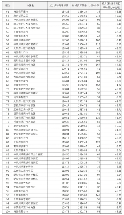 2021年5月の対象件数が30件以上ある全国186市区よりランキングを算出。