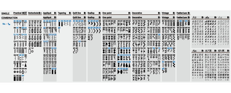 直前に縫った模様10種類(各種設定含む)を呼び出せる。