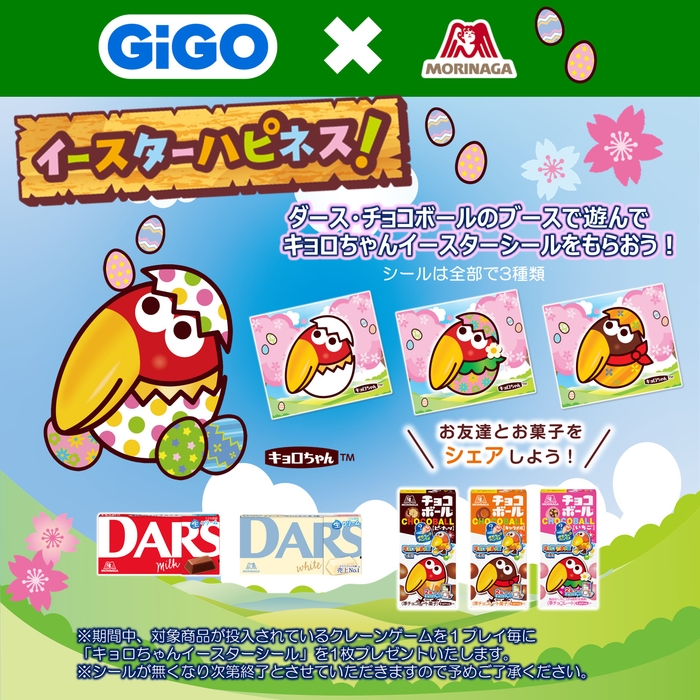 GiGOのお店でキョロちゃんイースターシールがもらえる!「GiGO×森永製菓 イースターハピネス!キャンペーン」