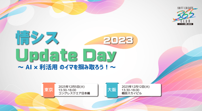 株式会社ソフトクリエイト(本社:東京都渋谷区/代表取締役社長:林 宗治、以下 ソフトクリエイト)は、DX推進を実現するために有効な「Microsoft 365」の利活用をテーマとしたイベント「情シス Update Day 2023」を12月5日(火)に東京、12月12日(火)に大阪にて開催します。