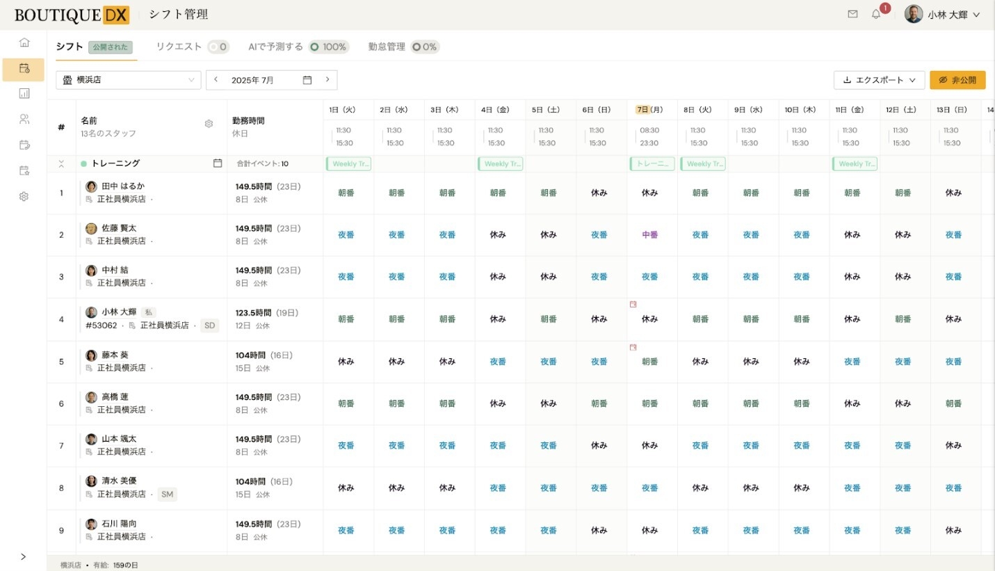 Boutique DXは、シフト管理、来店客管理、イベント管理をはじめとする店舗運営に必要な機能をオールインワンで提供するプラットフォームです。