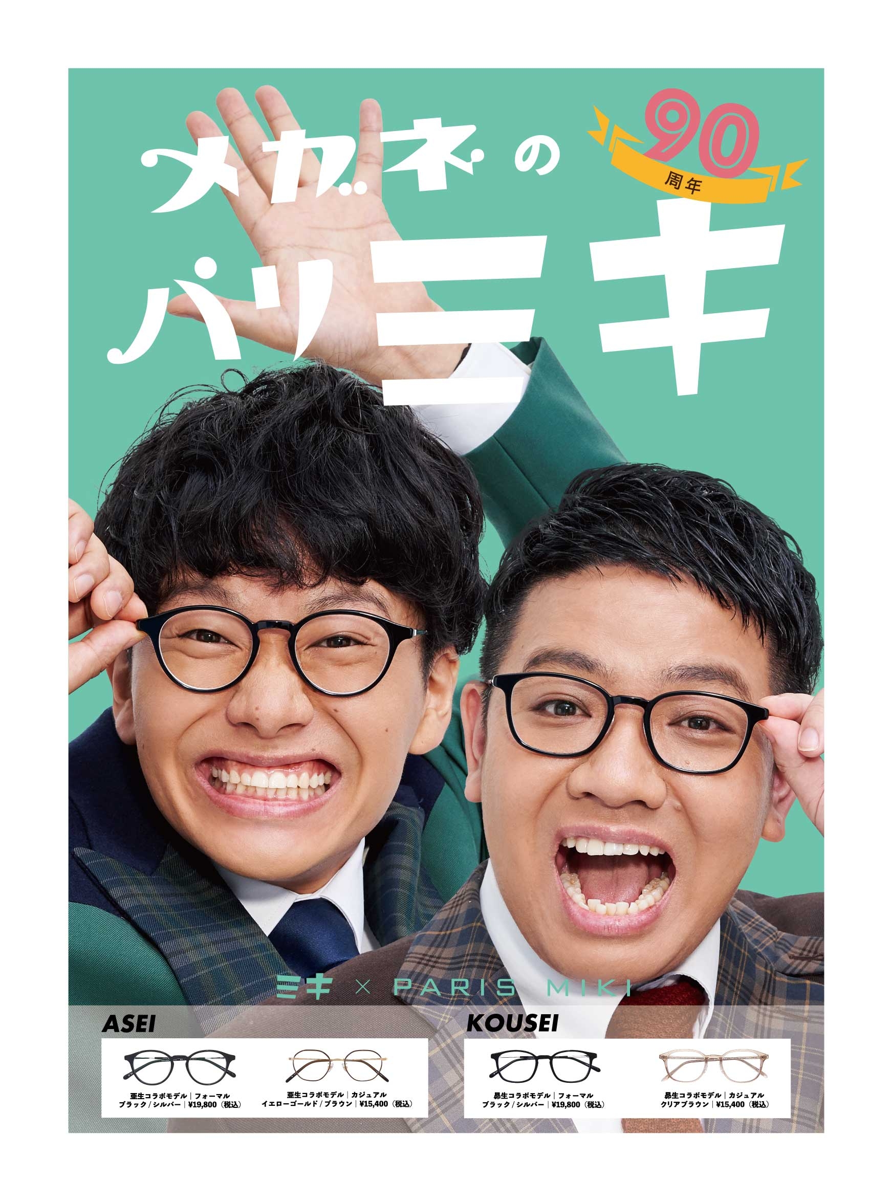 「パリミキ」「メガネの三城」を展開している株式会社 三城(本社:東京都港区、代表取締役長:澤田将広 ※以下「パリミキ」)は、創業90周年を記念して、兄弟漫才師「ミキ」とのコラボレーションメガネを製作いたしました。