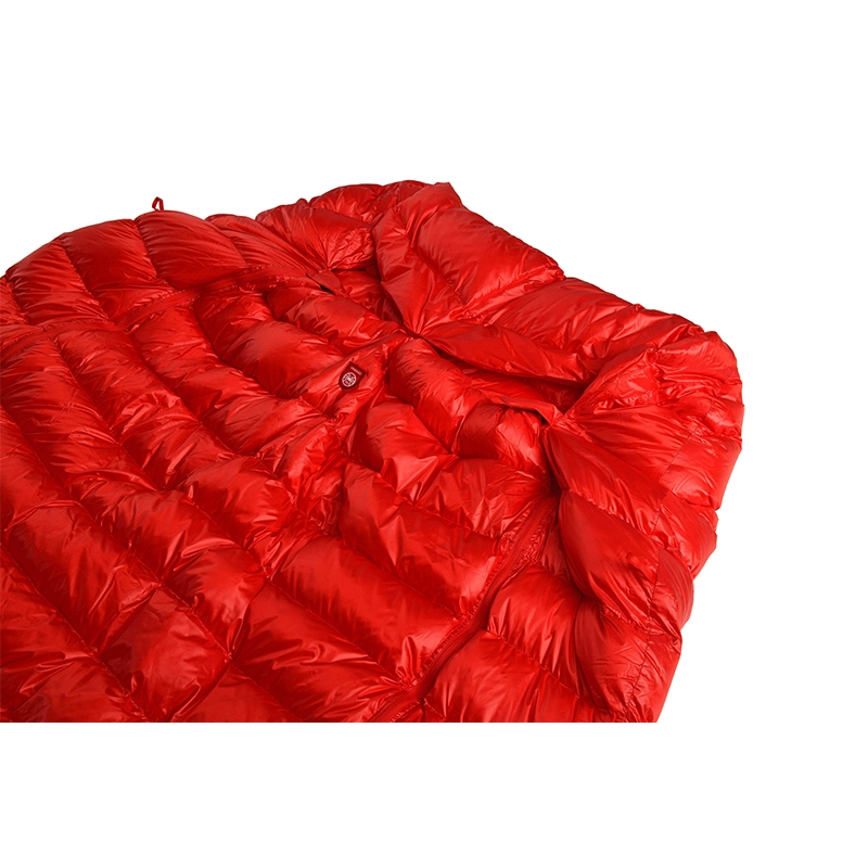 ダウン製品は化繊中綿に比べ、2倍以上軽くまた、化繊の1/4のボリュームで同程度の保温力を発揮します。結果として重量を大幅に削減でき、軽量コンパクトである事を装備に求められるアウトドアシーンにベストな素材であるといえます。