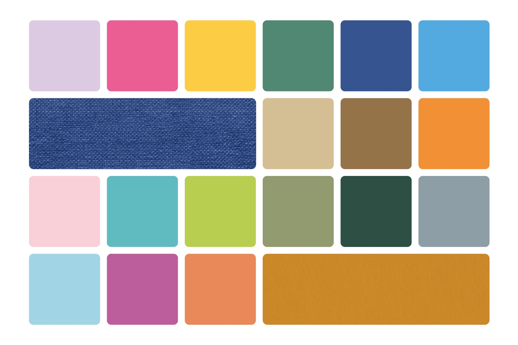デニムカラーは、デニム生地そのものを表現。その他のカラーにもさりげない生地テクスチャを入れて、シールのペッタリ感を軽減しています。