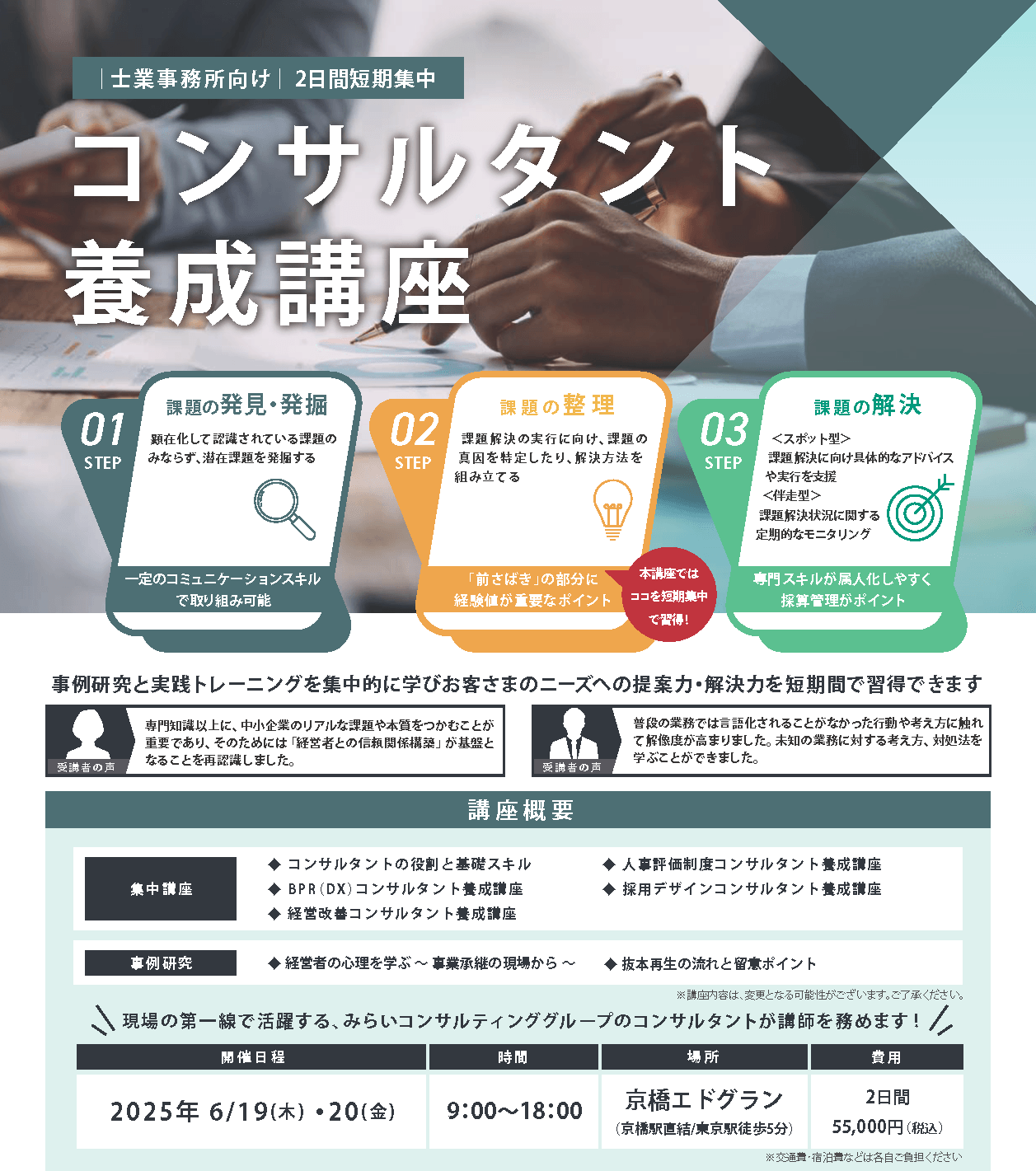 ■みらいコンサルティンググループの取り組み「士業事務所向けコンサルタント養成講座」