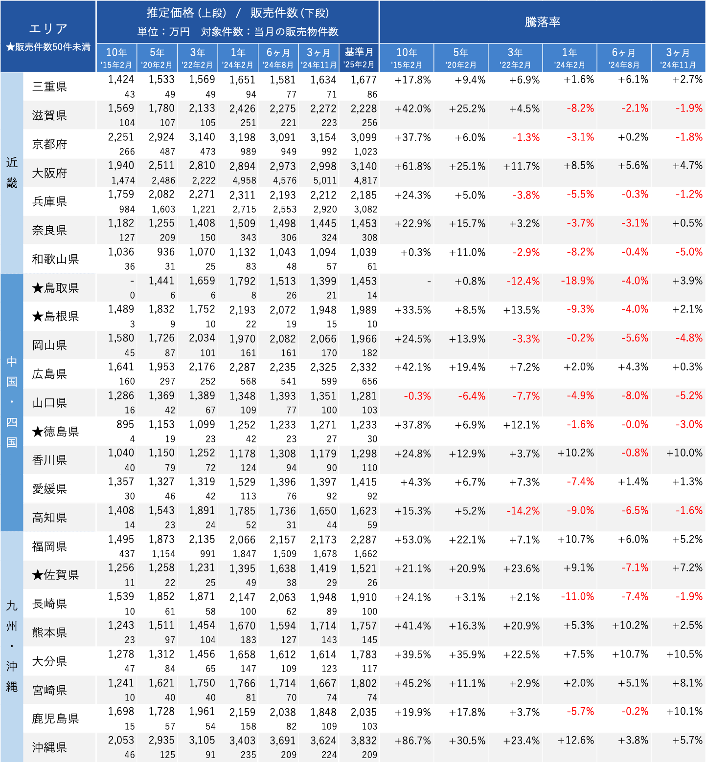 ※2025年2月の販売件数*2が50件未満の県は、算出根拠となるデータ数が少ないため下記対象から除外。