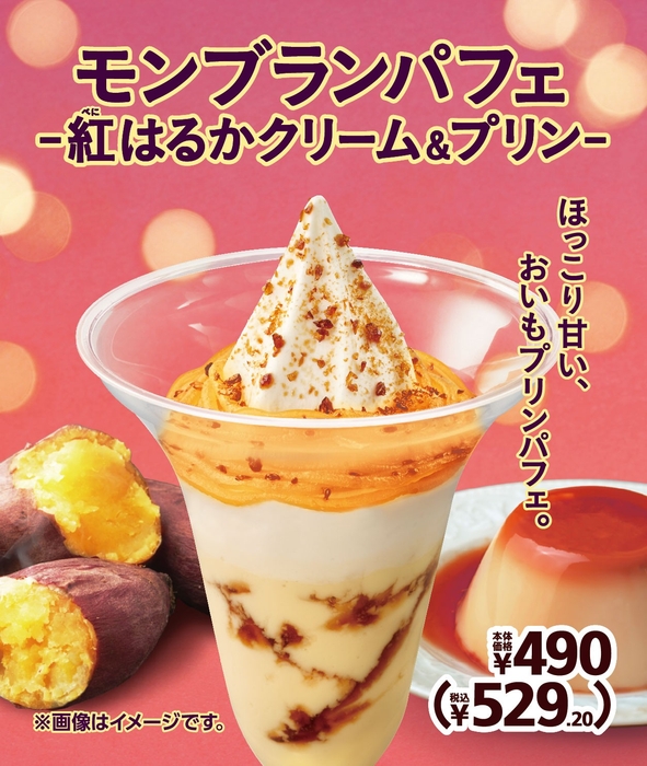 ●商品特長:定番人気商品「なめらかプリンパフェ」に芋モンブランクリームをトッピング。