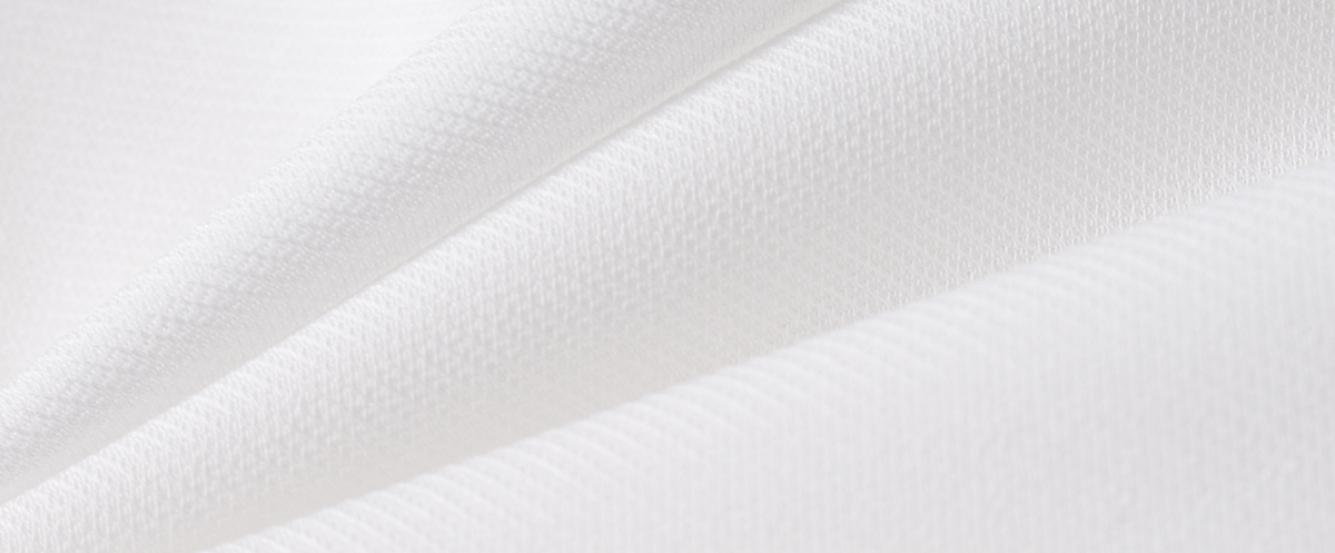 多孔性の編み構造で、通気性があり、常に快適で心地良い環境を整えます。生地の繊維内にたくさん空気を含み、肌と編地の間に空気の層をつくることで、衣類内の温度・湿度を自然に調整する機能も併せ持っています。