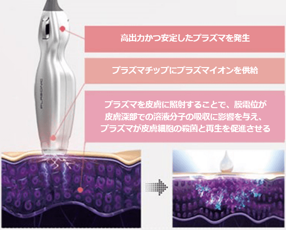 プラズマフェイシャルは薬剤を皮膚の中に浸透させる作用があります。シルクロでできた微細な皮膚の穴に有効成分が入り込み、肌の修復・鎮静を助けます。その他、殺菌作用もあるため、ニキビ菌を減らす効果もあります。