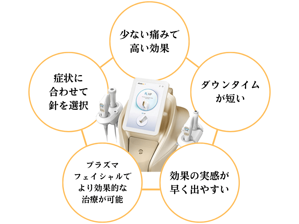 シルクロに限らず、マイクロニードルフラクショナルRF治療器はダウンタイムが短いことが特長です。シルクロには、プラズマフェイシャルが行える器機が付属しています。
