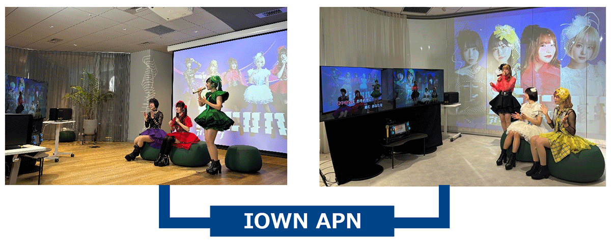 エクシングの双方向通信を搭載したカラオケ機器のJOYSOUND X1の2台をIOWN APNで接続し、どこにいても同じ空間にいるような感覚で歌えるオンラインデュエットの実現の可能性を、本実証実験において評価しました。