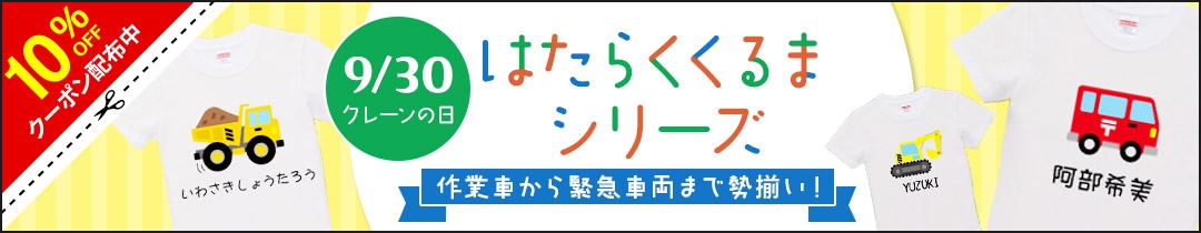 クレーン車や消防車!お子様の心をくすぐるはたらくくるまデザイン”名入れ”Tシャツ&マグカップ – 9/30特別セール