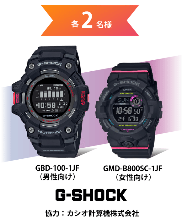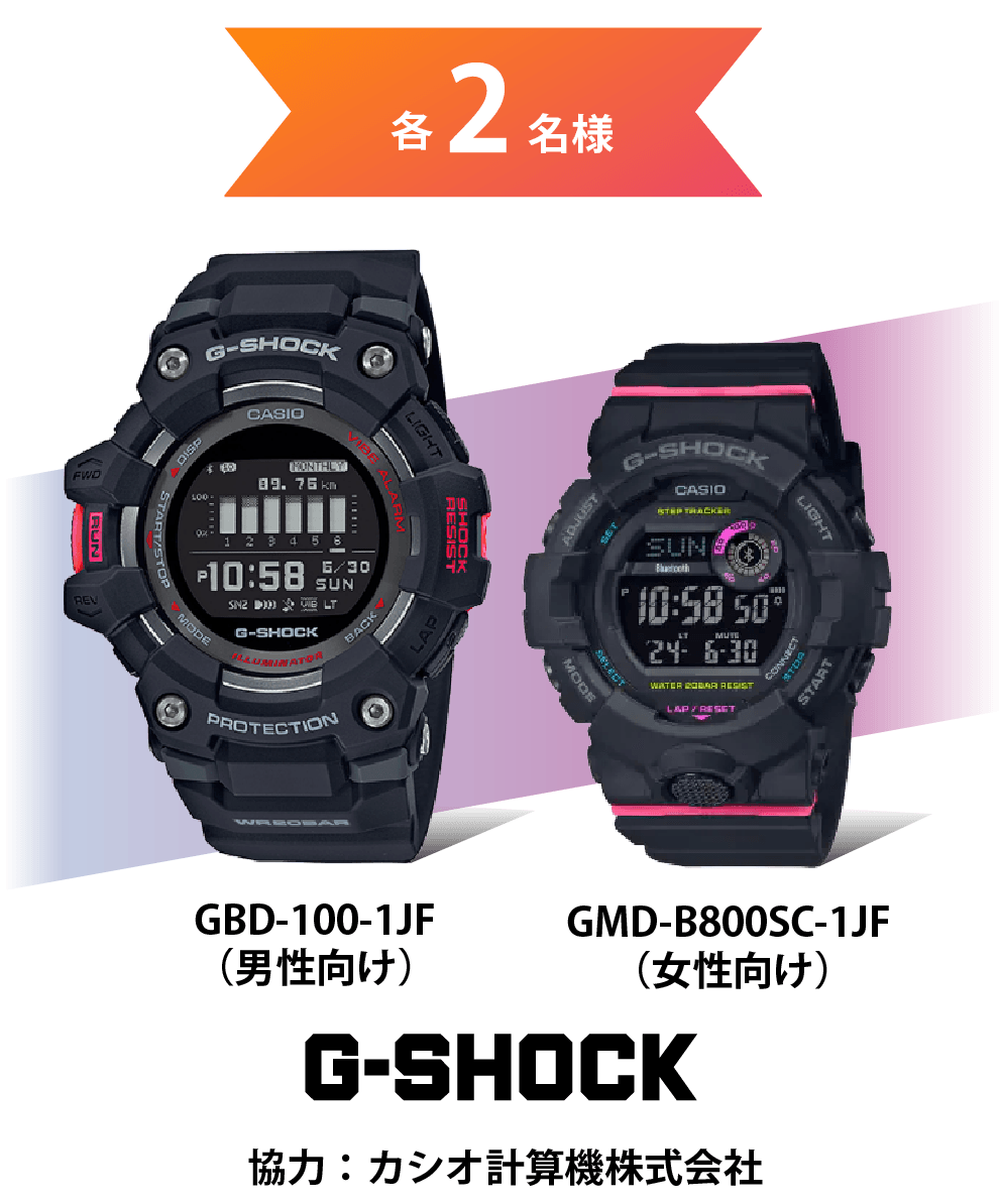 ●G-SHOCK GBD-100-1JF(男性向け)/GMD-B800SC-1JF(女性向け)各2名様