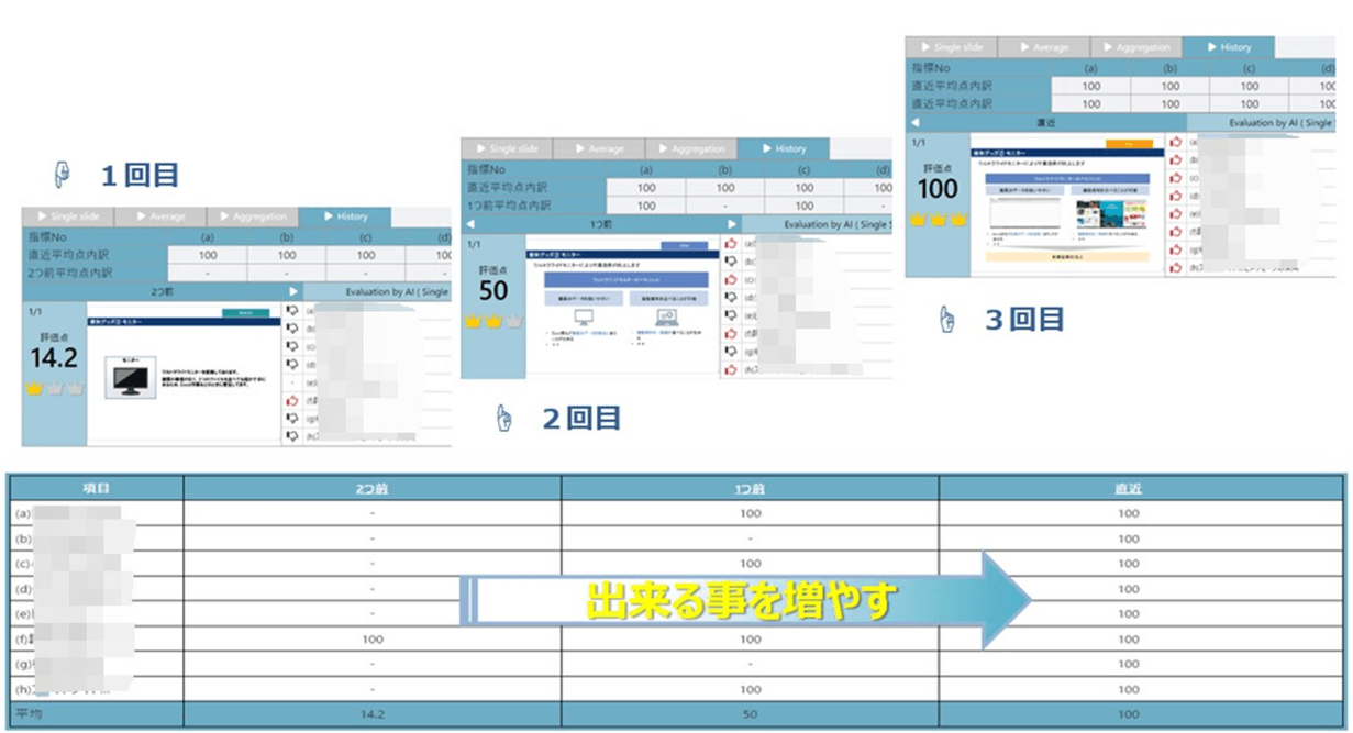 ● 過去と比較し、出来てない指標を修正。より良いビジネスプレゼン資料に