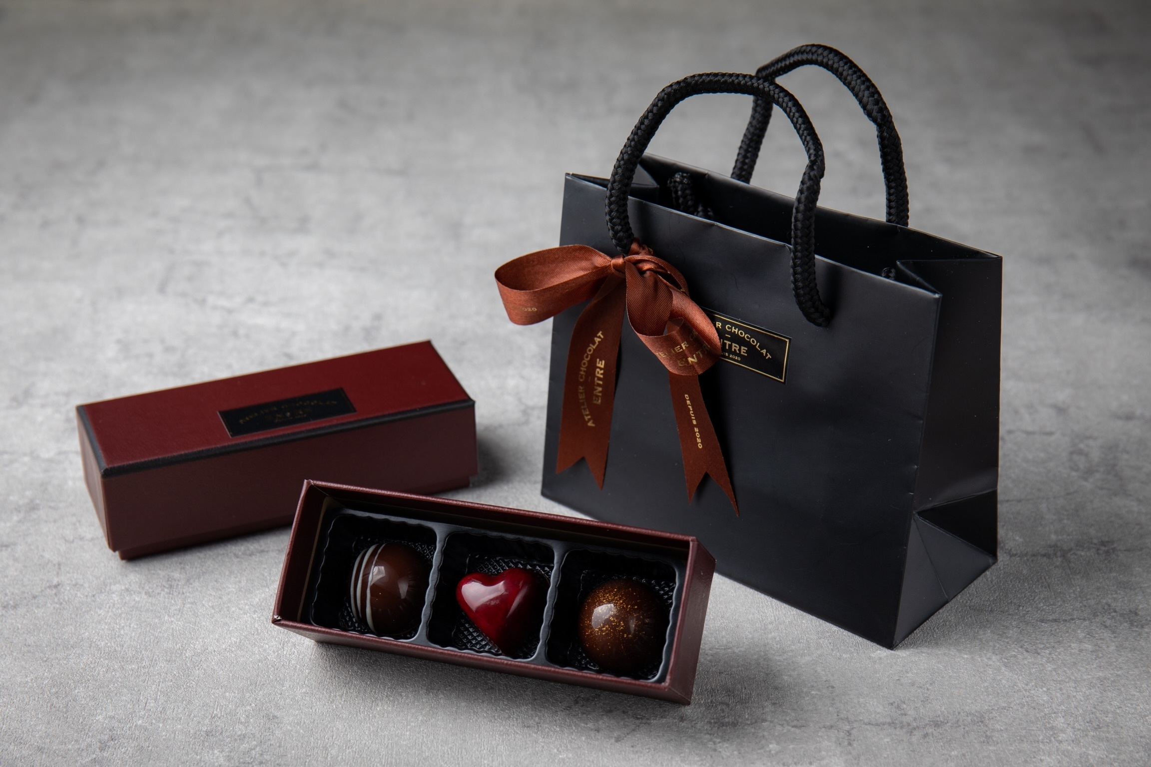 年に1度のバレンタインにむけて、当店ショコラティエ外山厳選の3種のフレーバーをふんだんに使用したボンボンショコラが完成いたしました。細かいテンパリングを施したチョコレートの艶やかな見た目と中のガナッシュとの最高のマリアージュをお楽しみください。