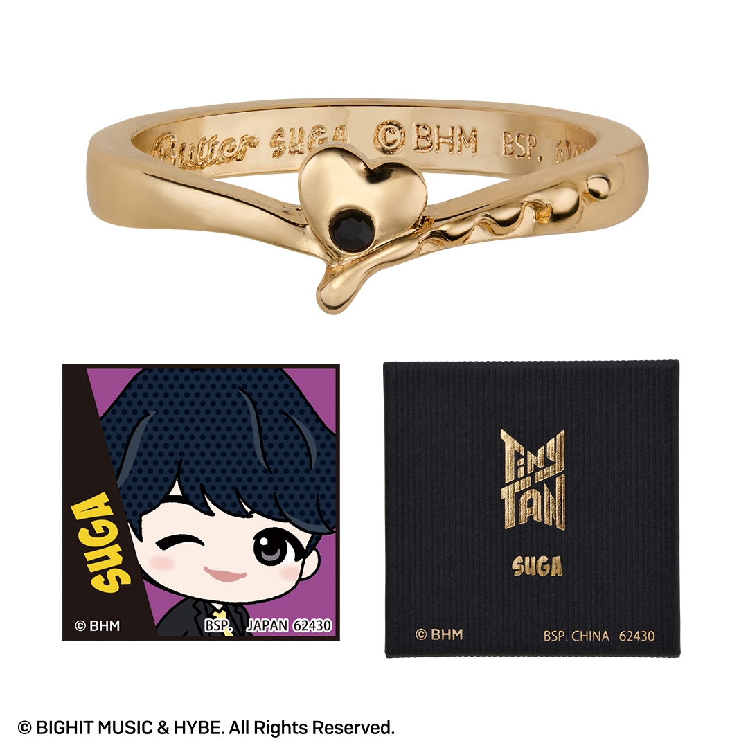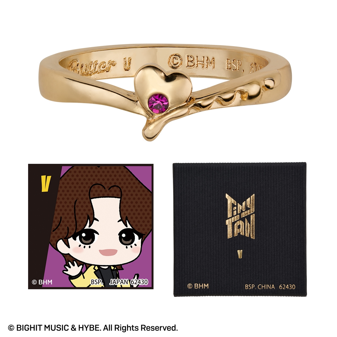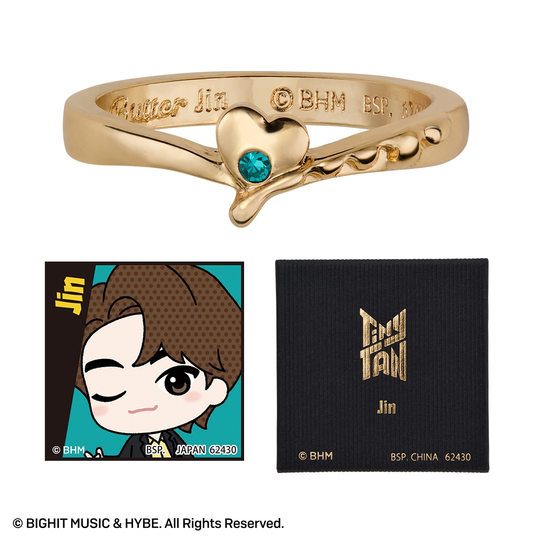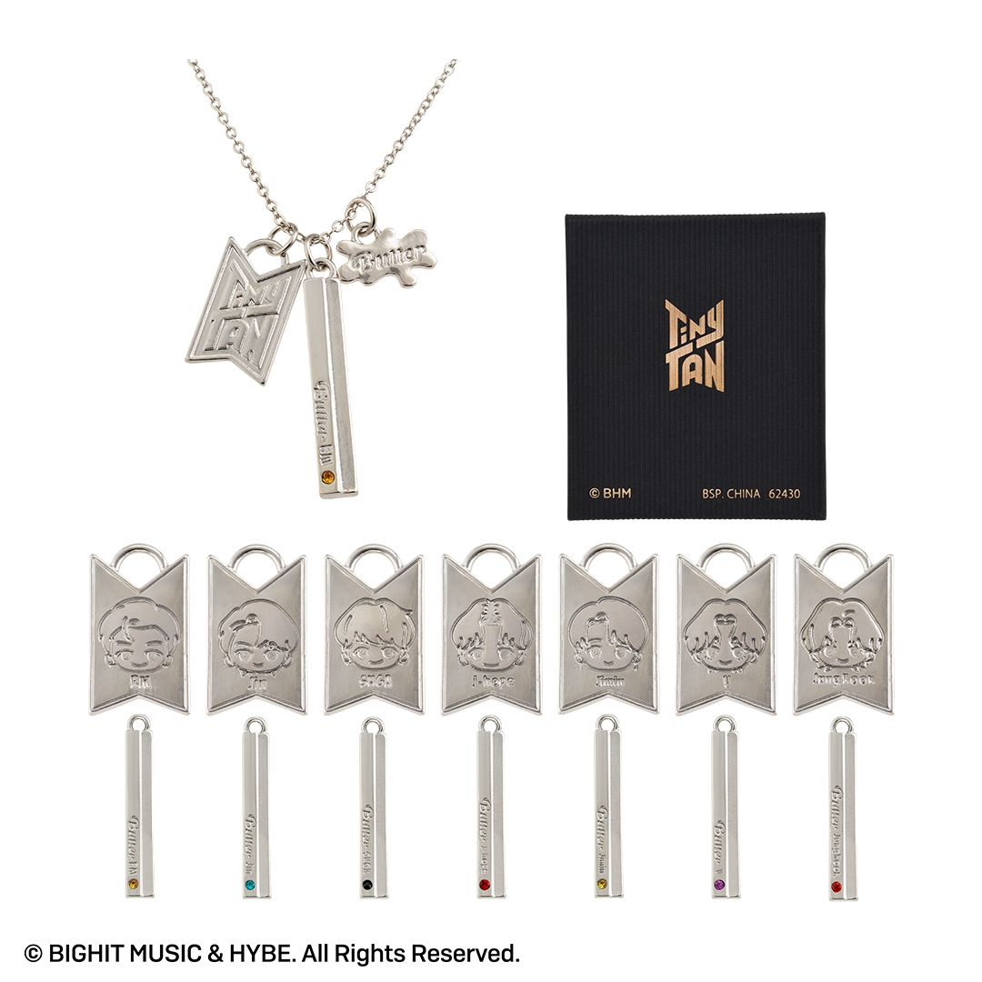 本商品は、BTSのキャラクター『TinyTAN』の一番アクセです。人気楽曲「Butter」をモチーフに、リングやチャーム付きペンダントをラインナップしました。