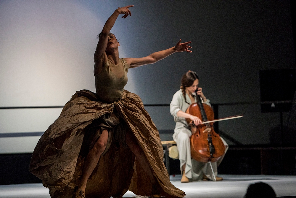 フラメンコダンサーのフロレンシア・オスと、チェロ奏者であり歌手のイシドラ・オリアン。双子の姉妹である2人だけが出演するミニマルな作品ですが、いわゆる“コラボ”という域をはるかに超えた、独特の趣のあるフラメンコ作品です。