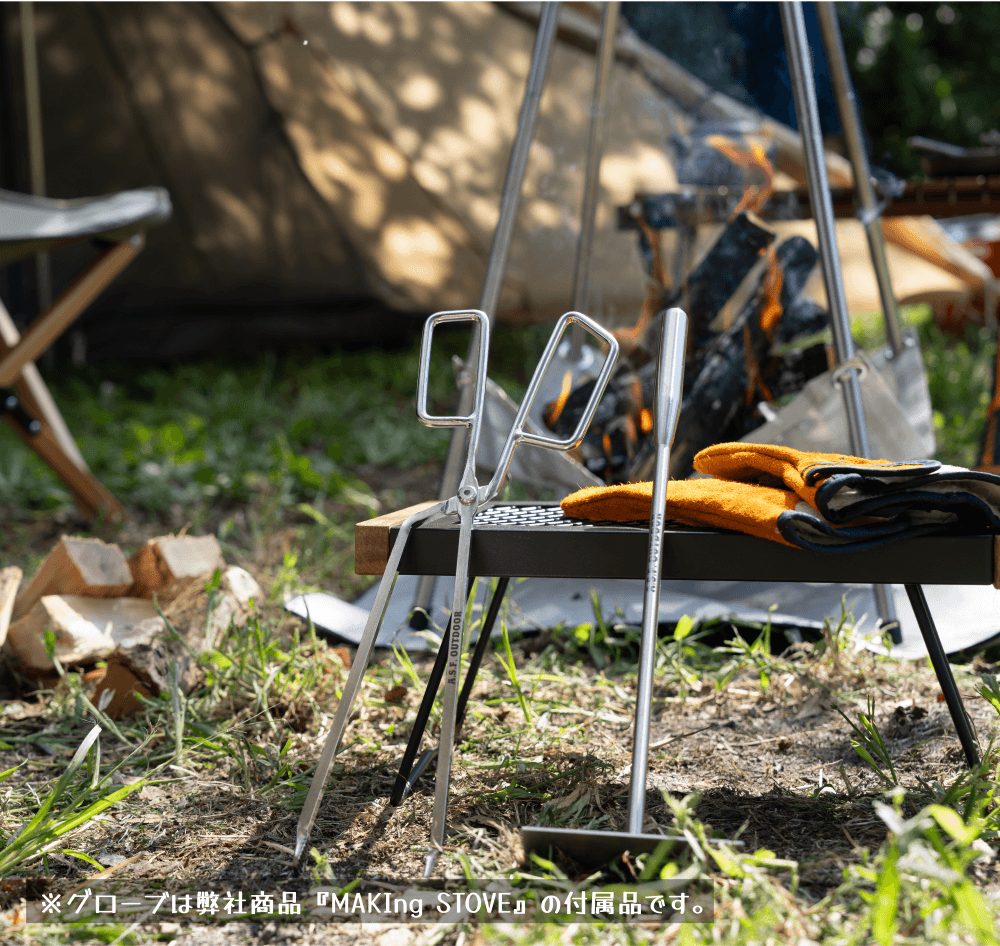 手の小さな方や、耐熱グローブを着けた状態でも「掴みやすい」火ばさみを追求し、開発された『HIKAMI』は、文房具のハサミと同じ感覚で開閉自在。太く重い薪も「てこの原理」で掴みやすくなっています。コンパクトな設計のため、物が多く狭い場所でも楽に取り回しが可能。『MAKIng STOVE』専用バッグにも収納可能なサイズです。バックパックやザックにも収納でき、約234gと軽量なため、登山や川でのレジャーなどキャンプ以外でのアウトドアシーンでも活躍してくれます。