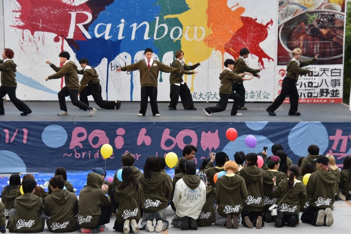 大学祭の今年のテーマは「Rainbow ~bridge for 100th~」で、「Rainbow」が困難の後に現れる希望と再出発を、「bridge」は今を生きる私たちから来年に迎える開学100周年へとつながる想いの橋を象徴し、「過去の歩みを振り返りながら、未来への一歩を祝う特別な節目であり、100周年に向けて学生と教職員、地域の皆さんで架ける『虹の橋』でつながりと笑顔・感謝の気持ちを分かち合いたい」との思いが込められています。