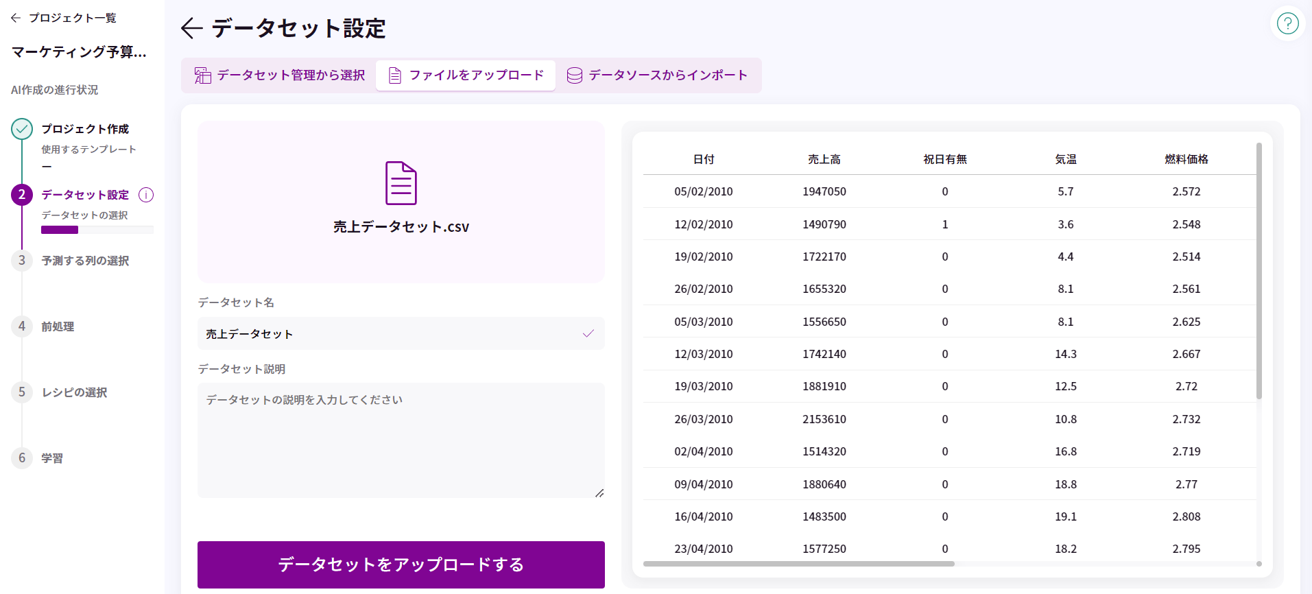 ここでは、予測したい対象(素材の配合量や加工条件など)を選択します。