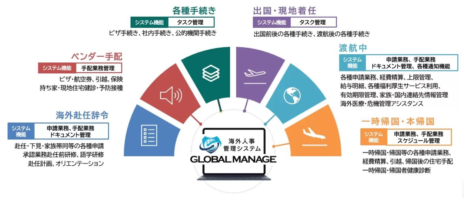 大手海外進出企業が多数利用中の海外人事管理システム「GLOBALMANAGE」※2を、本サービス向けにカスタマイズし、プラットフォーム化しました。