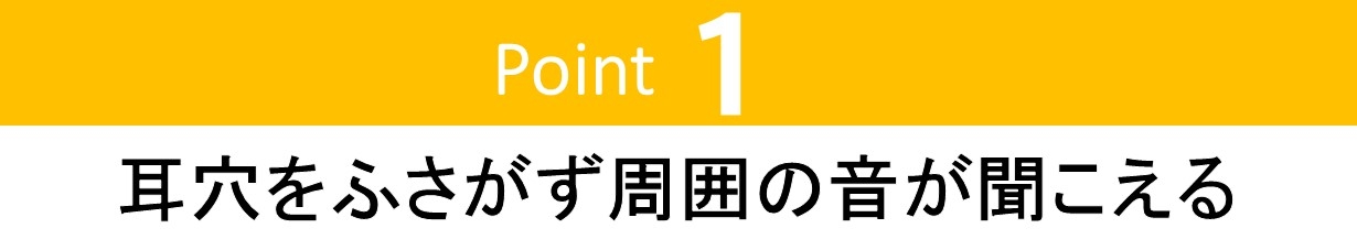 「Otocarti」は、カナル型イヤホンのように耳穴をふさいだり、 骨伝導イヤホンのように大きな振動体を強めの側圧でこめかみに押し付けなくていいため、 痛みがなく耳への負担も小さいという特徴があります。