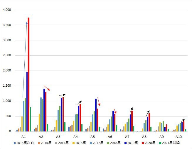 A3社、A4社、A7社、A8社、A10社は、従来通りの増加傾向を示しています。
