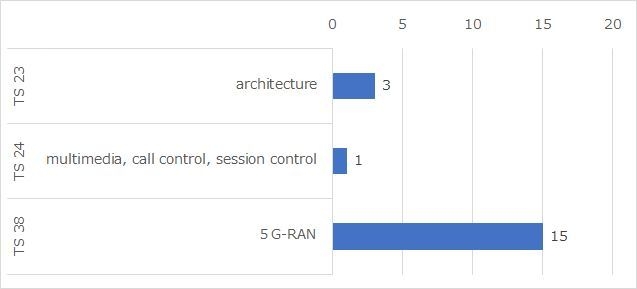 追加調査対象となったTS 23(アーキテクチャ系)、TS 24(マルチメディア、呼制御、セッション制御)の規格も注目が必要ですが、TS 38(5G-RAN)で新たに確認できた8種の規格にも注目が必要です。