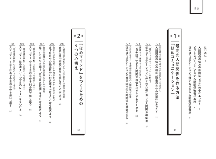 「ほめコミュ」を実践するための、ほめマインドの作り方から、良好な人間関係の構築メソッドまで、具体的にわかりやすく解説しています。