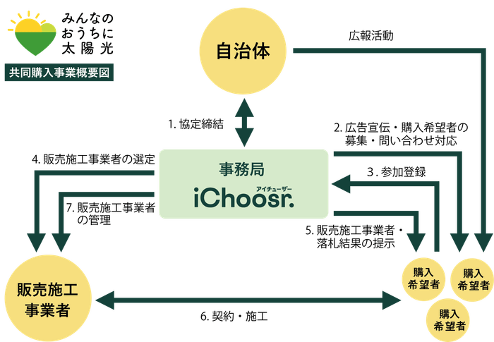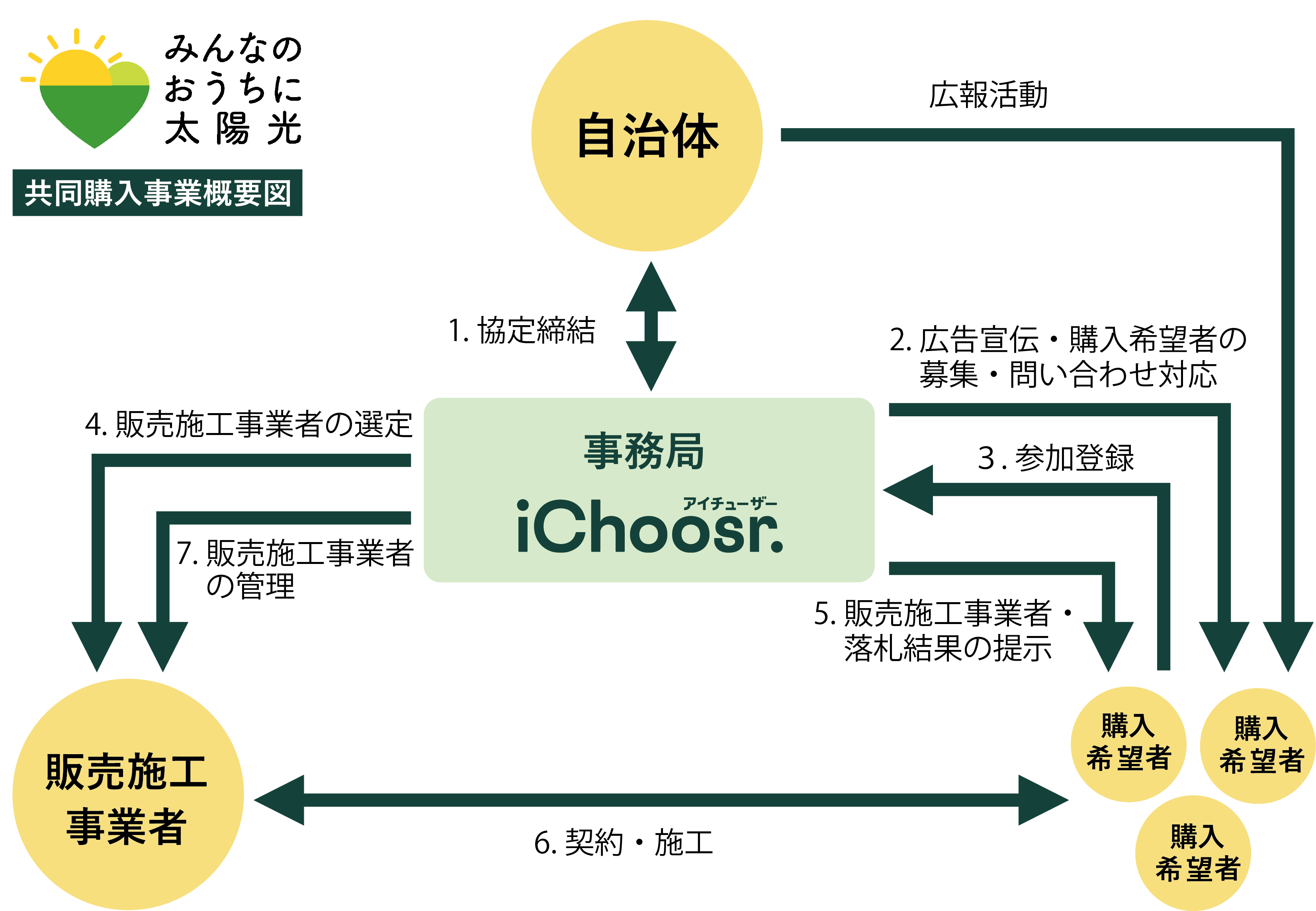 太陽光パネル・蓄電池の共同購入事業は、公募により選ばれ、協定を締結したアイチューザー株式会社(本社:〒106-0047 東京都港区南麻布5-2-32、代表取締役社長 廣瀬 彬)が運営しています。