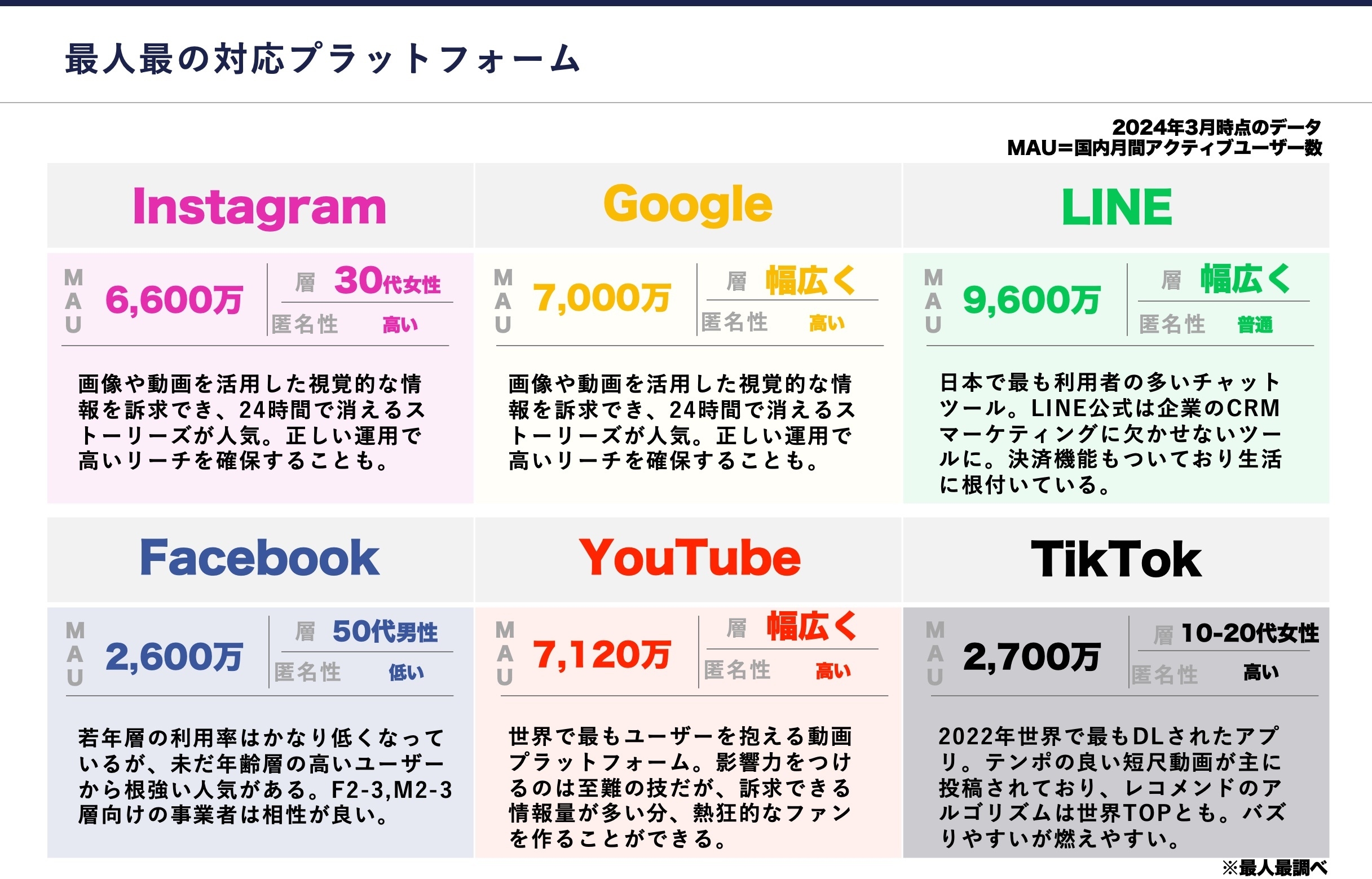 最人最 ~もっとも~は「もっと、モノづくりに、物語を。」という理念のもと、ものづくり企業の魅力やその背景を描き、ネット広告やSNSマーケティング、WEBマーケティングなどの様々先端技術を駆使して、企業の広報、販売、集客活動などを最大化します。これにより、企業自らが持つ付加価値を届け、デジタル市場での成功を導きます。少額から始められるデジタルーマーケティング支援により、予算が限られている企業でも、簡単にデジタル活用を始められる点が特徴です。
