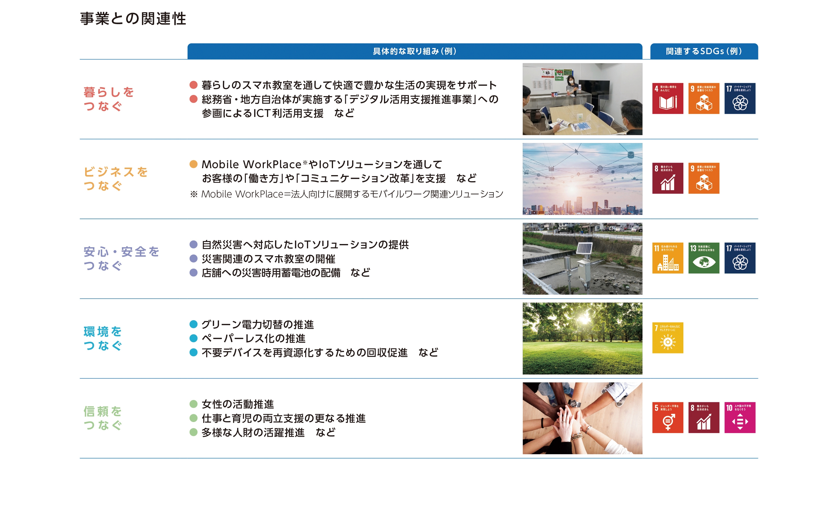 サステナビリティ方針と当社事業の関連性は、下記のように整理しています。